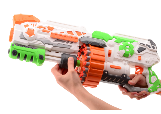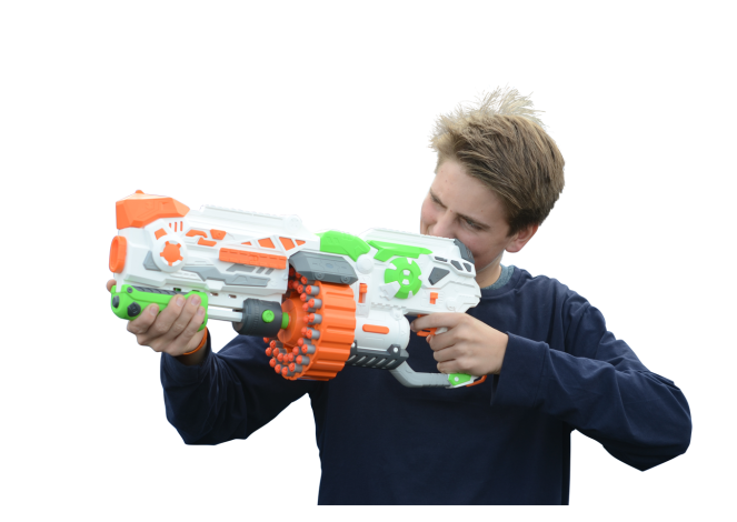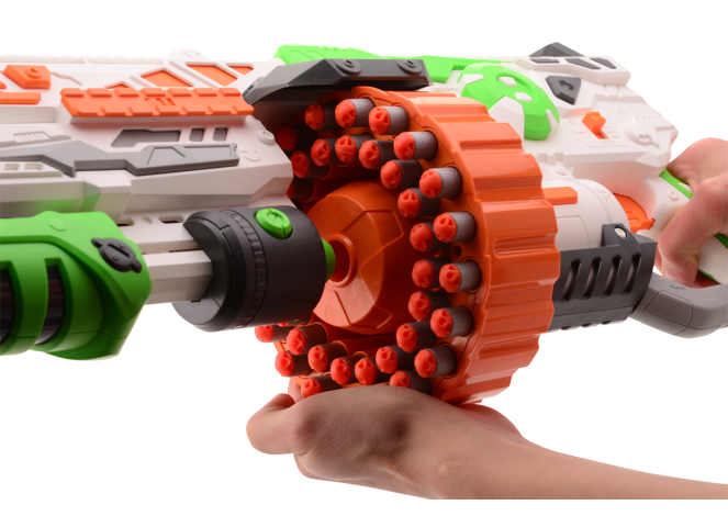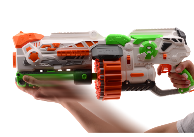 Met de Phantom I maakt jouw tegenstander geen schijn van kans! Door de twee standen schiet je in een razend tempo darts naar je tegenstander. Met een magazijn waar je tegenstander jaloers op is, ben je voorbereid voor iedere situatie. De Phantom I wordt geleverd met maar liefst 80 darts en schiet tot wel 18(!) meter.