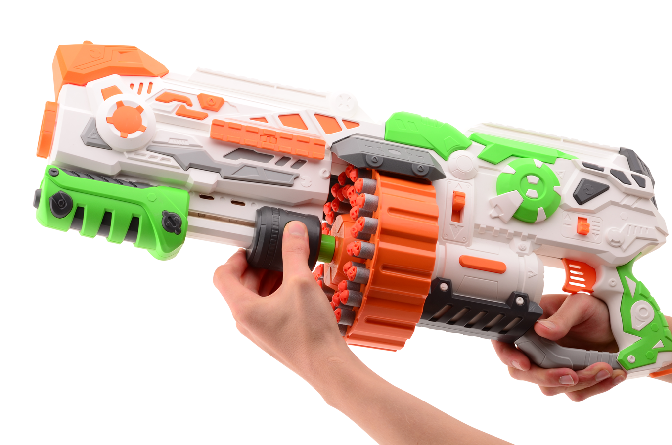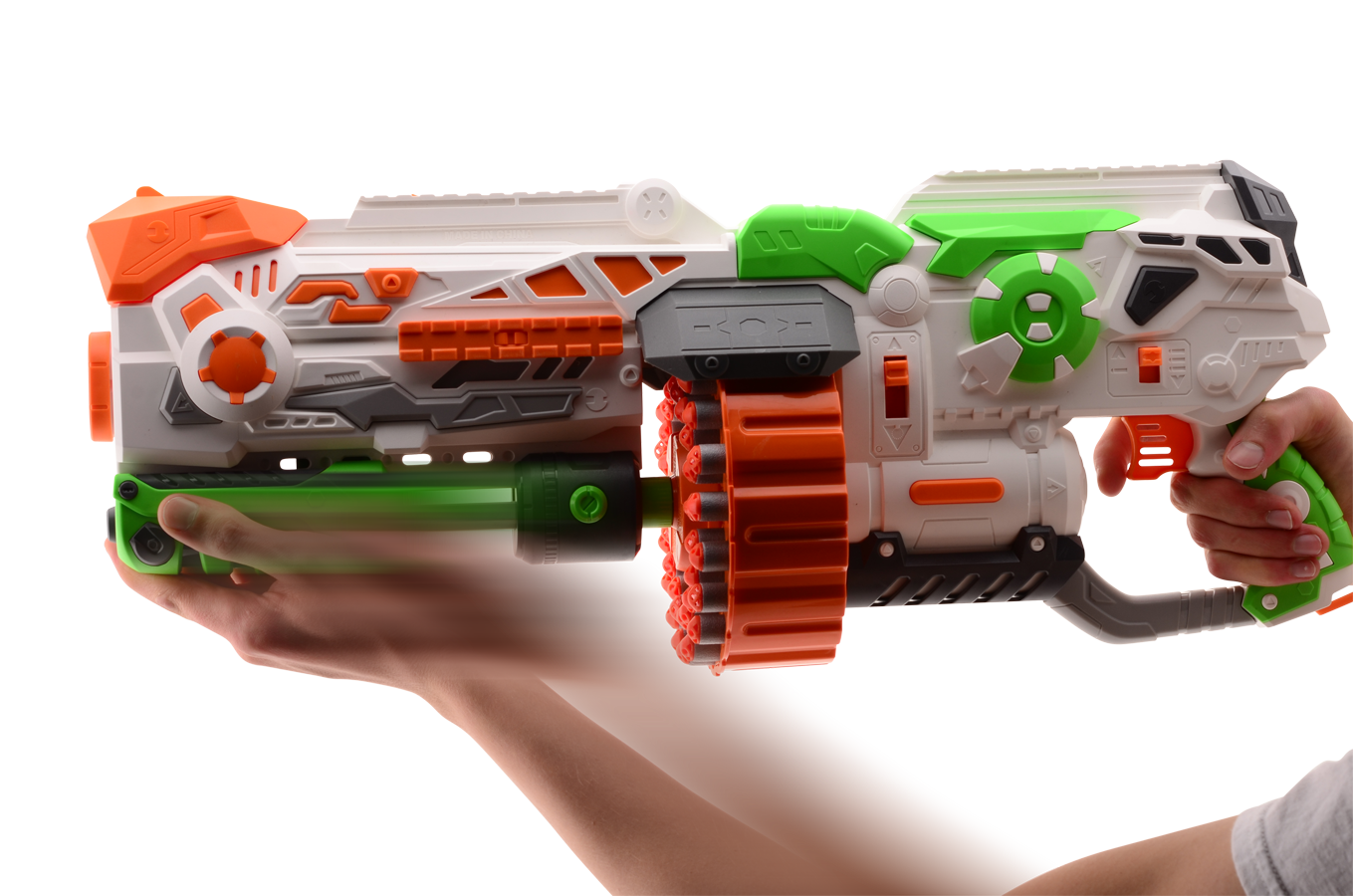Met de Phantom I maakt jouw tegenstander geen schijn van kans! Door de twee standen schiet je in een razend tempo darts naar je tegenstander. Met een magazijn waar je tegenstander jaloers op is, ben je voorbereid voor iedere situatie. De Phantom I wordt geleverd met maar liefst 80 darts en schiet tot wel 18(!) meter.