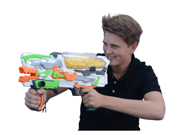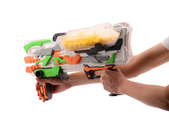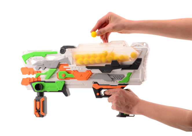 Genoeg balletjes in de aanslag, alleen zo krijg je je tegenstander klein! Met de Tack Pro Power Shot II beschik je over een groot laadruim die je gemakkelijk kunt vullen met de meegeleverde balletjes. De balletjes doen geen pijn maar schieten in een rechte lijn op je tegenstander! De Power Shot II wordt geleverd met 50 ballen.