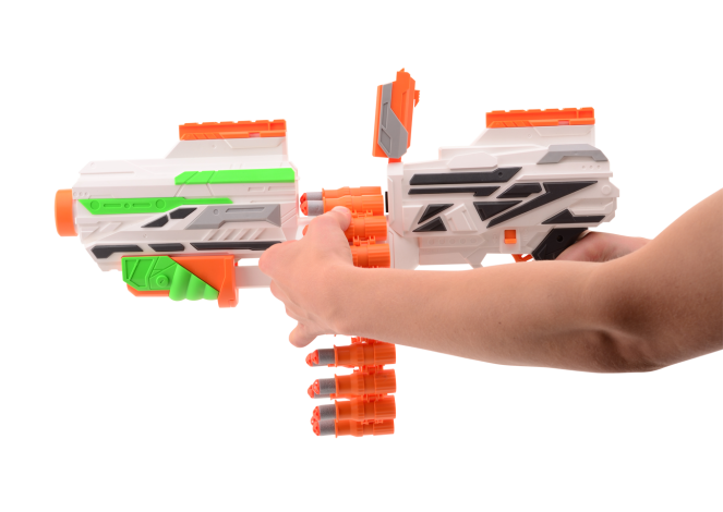 WOW, wat een set! Zo kun je elke strijd aan! Met deze set van de Rattle Belt X beschik je over een extra scope, een target can en 40 extra darts! De ketting zelf kan worden gevuld met 20 darts en dankzij de handige klep is deze er snel uit te halen en te vullen. De Rattle Belt X schiet tot wel 23 meter ver!