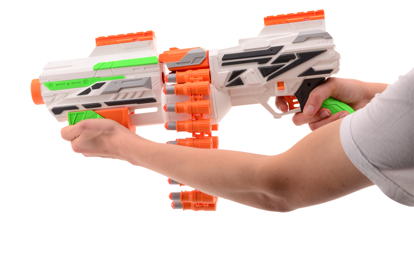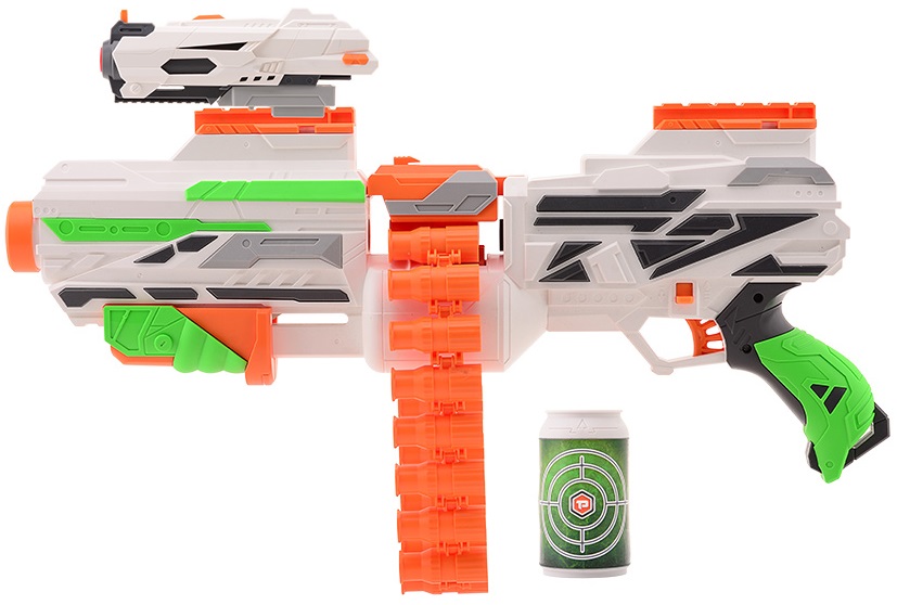 WOW, wat een set! Zo kun je elke strijd aan! Met deze set van de Rattle Belt X beschik je over een extra scope, een target can en 40 extra darts! De ketting zelf kan worden gevuld met 20 darts en dankzij de handige klep is deze er snel uit te halen en te vullen. De Rattle Belt X schiet tot wel 23 meter ver!